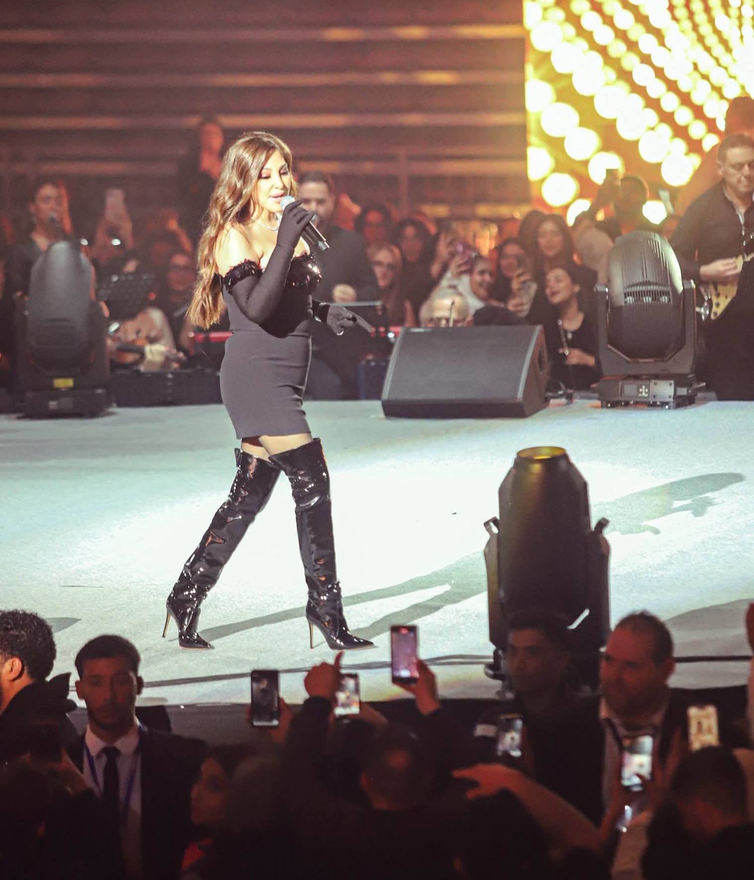 أطلّت النجمة اللبنانية إليسا بإطلالة جريئة ومميزة خلال حفلها مساء أمس في قاعة رادس بتونس، حيث اختارت فستانًا قصيرًا باللون الأسود بتصميم مجسّم وقصة "سترابلس" مزينة بترتر برّاق عند الصدر، أضاف حركة ناعمة ولمسة فنية راقية إلى التصميم البسيط.