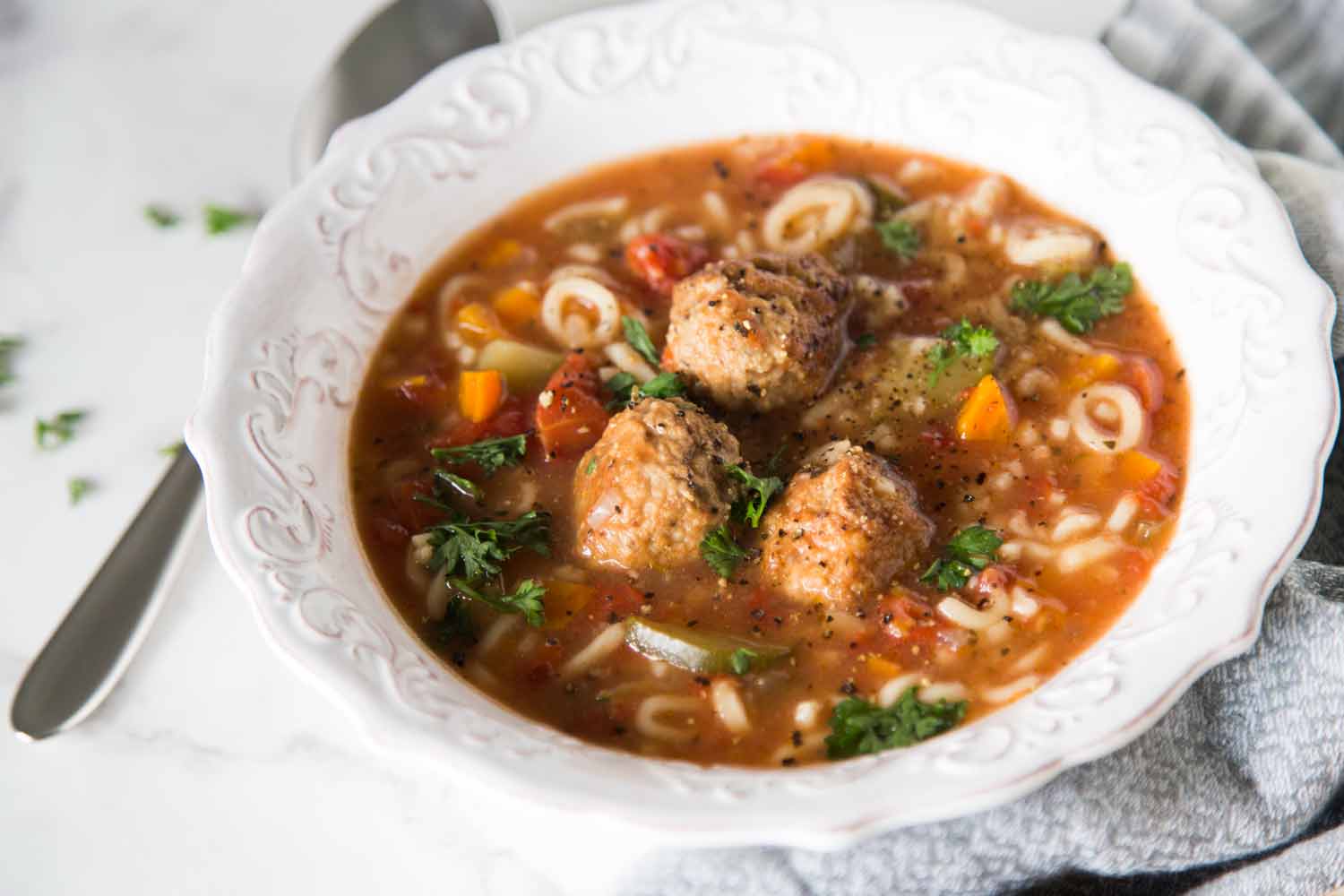 - نقوم بطبخ الشربة على نار هادئة إلى أن تنضج كريات الدجاج