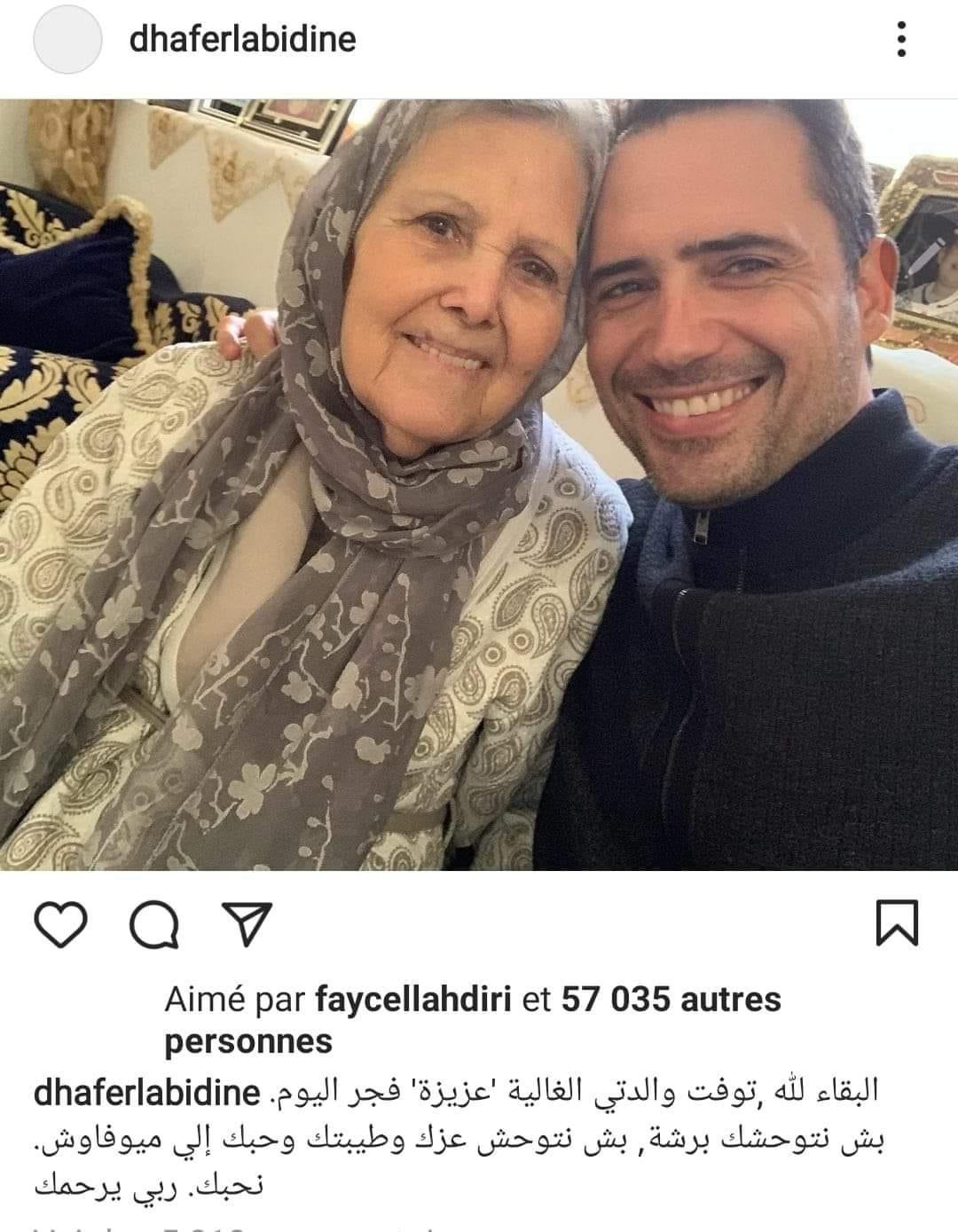 أعلن اليوم السبت 30 جانفي 2021 الممثل ظافر العابدين عن وفاة والدته "عزيزة".