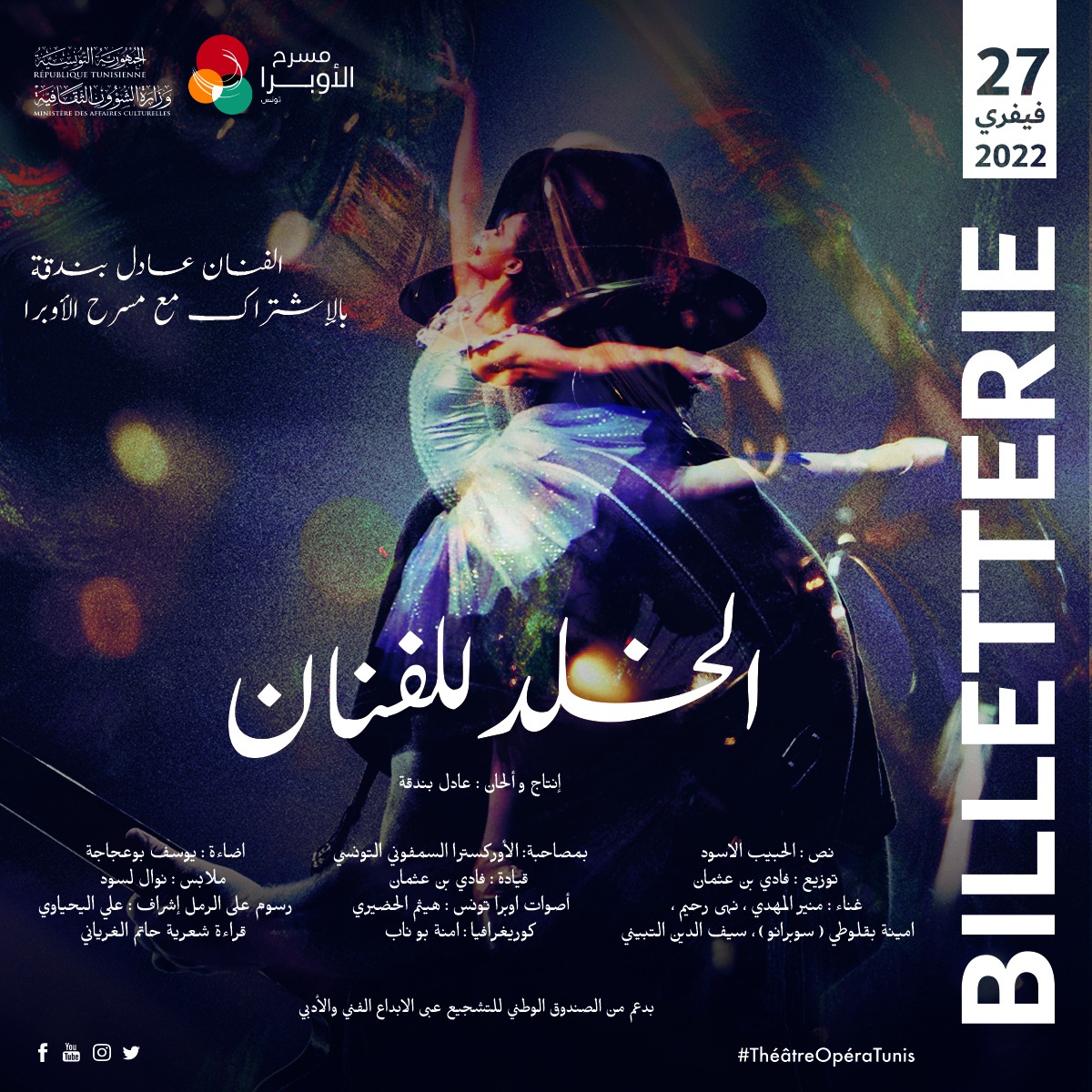 يحتضن مسرح الأوبرا بمدينة الثقافة ،يوم الأحد 27 فيفري الجاري، العرض الأول للعمل الضخم "الخلد للفنان" لعادل بندقة.