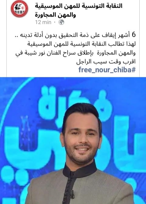 طالبت النقابة التونسية للمهن الموسيقية والمهن المجاورة يوم أمس الثلاثاء 26 جويلية 2022 إلى إطلاق سراح المغني نور شيبة المودع سجن الإيقاف.