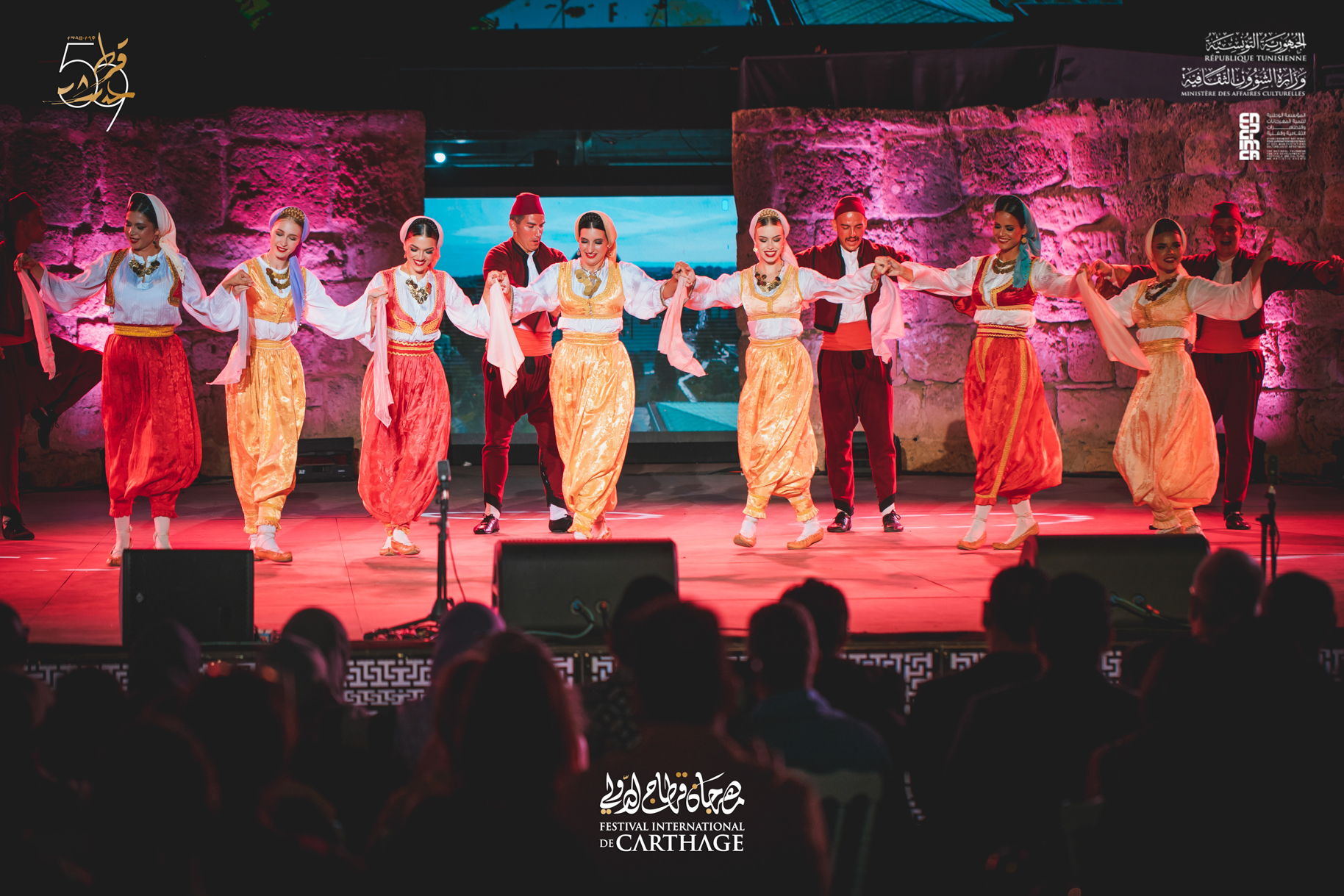 La troupe nationale des arts populaires de Libye a suivi avec un spectacle mêlant musique live et danse. Les instruments traditionnels tels que le bendir, le tbal et la cornemuse (zokra) rappellent des sonorités proches de celles tunisiennes. Deux tableaux en costumes traditionnels, similaires aux habits tunisiens, ont été chaleureusement applaudis.