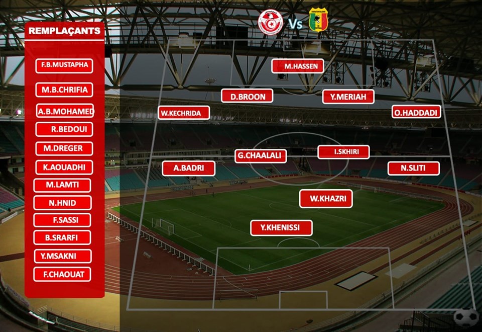 Mouez Hassen, Wajdi Kechrida, Dylan Bronn, Yassine Meriah, Ayman Ben Mohamed, Ghailane Chaalali, Ellyes Skhiri, Naim Sliti, Anice Badri, Youssef Msakni, Wahbi Khazri.