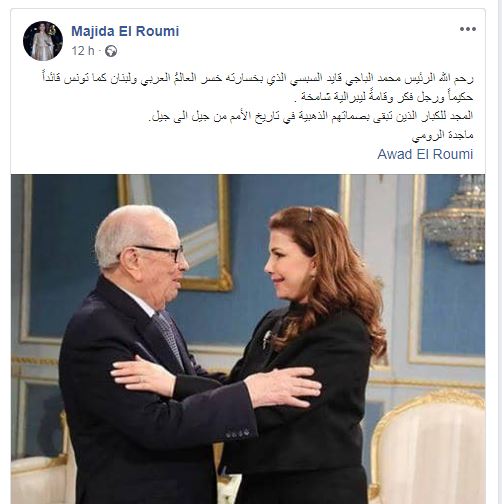 ' Que Dieu Bénisse le président Mohamed Beji Caïd Sebsi ! Avec sa mort, le monde arabe, le Liban ainsi que la Tunisie ont perdu un leader, un homme de savoir et une grande figure libérale'.