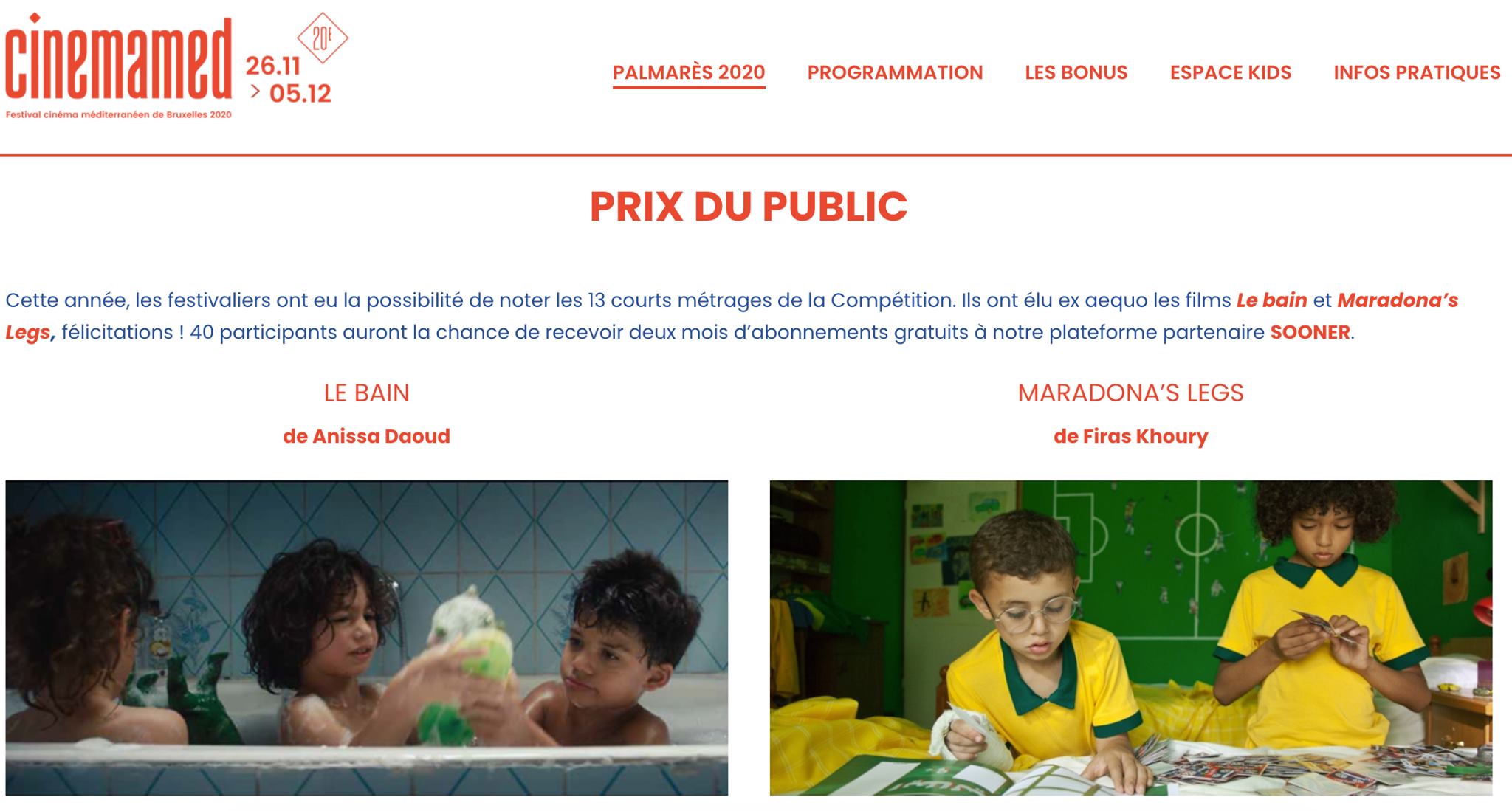 L’actrice et réalisatrice Anissa Daoud vient d’annoncer que son film ‘Le Bain’ vient de recevoir le prix du public au Festival Cinemamed de Bruxelles, Belgique.