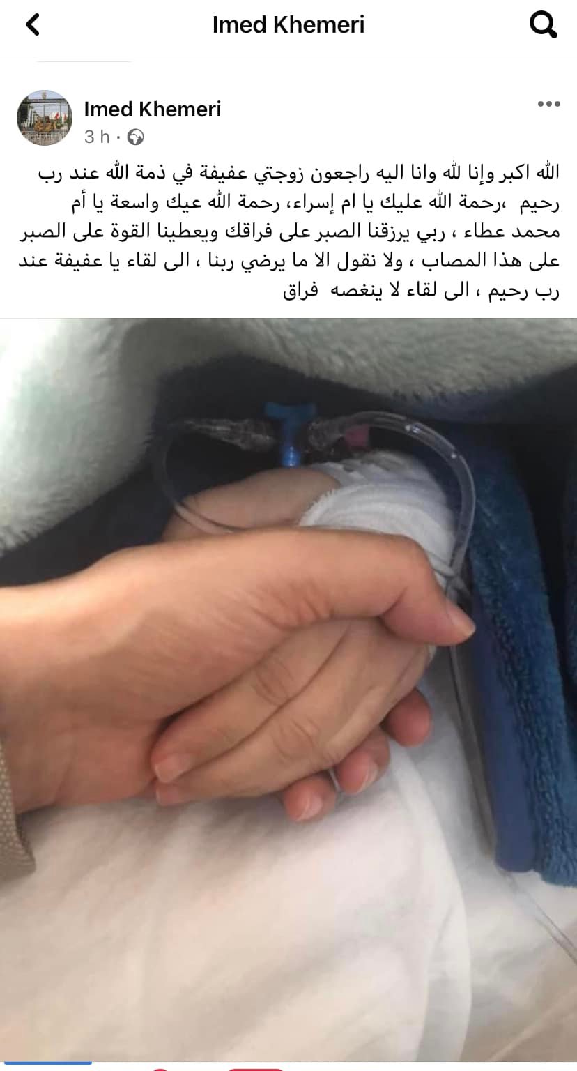 Le député d’Ennahdha Imed Khemiri a annoncé mercredi, le décès de sa femme.