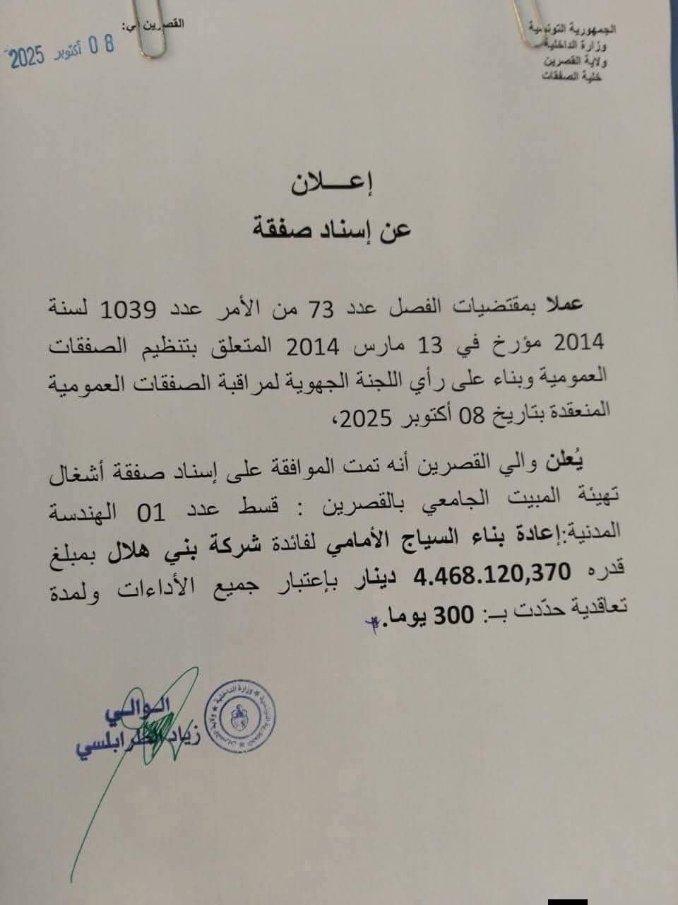 وفي توضيح نُشر على الصفحة الرسمية لولاية القصرين، أكدت المصالح الجهوية أن المشروع لا يقتصر على بناء سور بسيط أو عملية تجميلية، بل هو تدخل هندسي معقد ضروري فرضته وضعية انزلاق أرضي نشط وخطير بين سور المبيت والطريق الوطنية رقم 17، مما شكّل خطرًا مباشرًا على سلامة الطلبة ومستعملي الطريق.