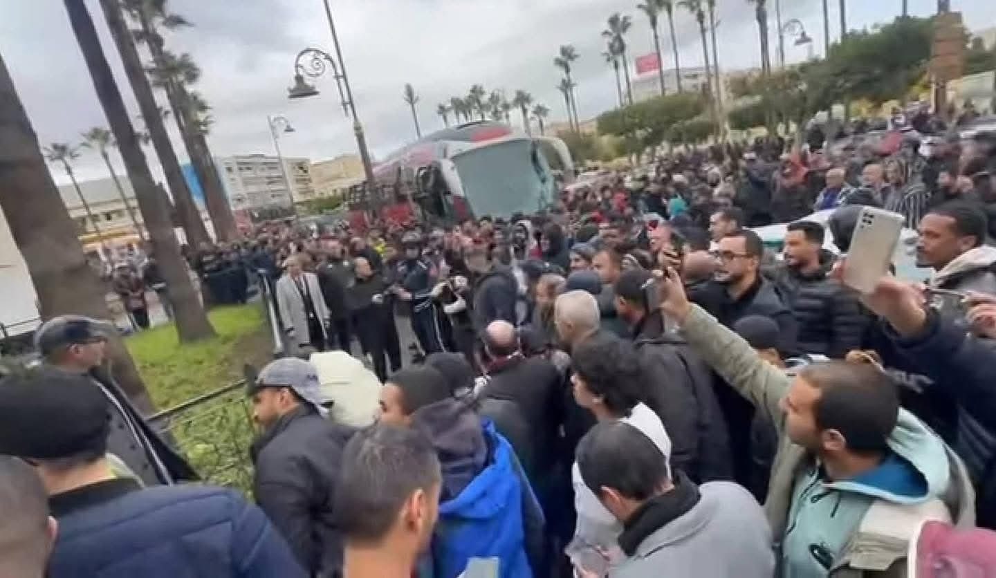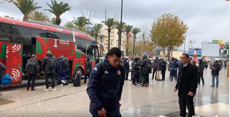 ووصلت الحافلة التي أقلّت بعثة المنتخب عبر الطريق السيّار، وسط إجراءات أمنية مشددة شاركت فيها وحدات من الدرك الملكي والأمن الوطني لتأمين تنقّل البعثة إلى وسط المدينة.