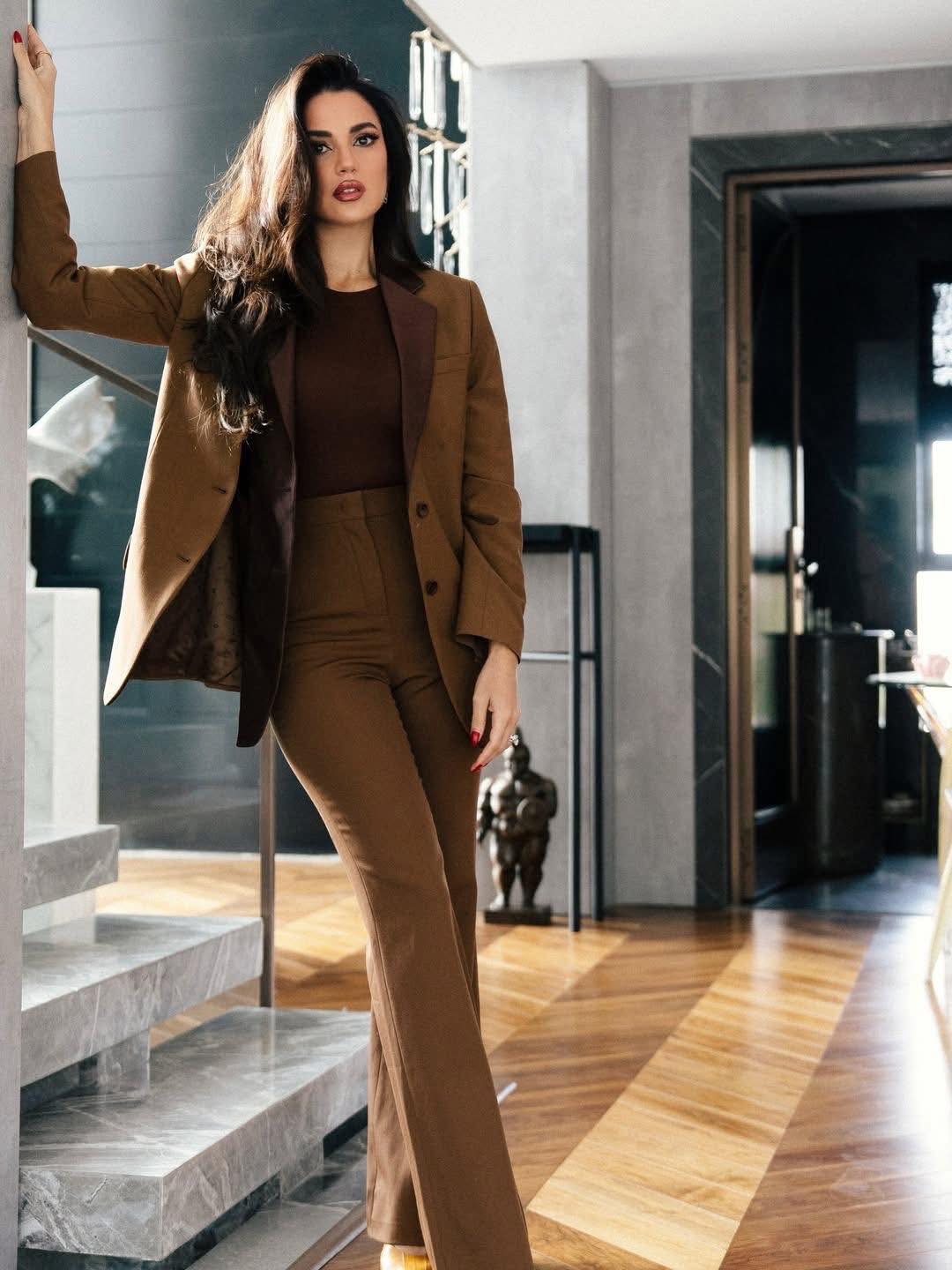درة زروق تتألق ببدلة بنية أنيقة (صزر)