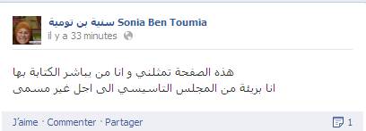 أعلنت اليوم السبت 27 جويلية 2013 سنية بن تومية نائبة المجلس الوطني التأسيسي عن كتلة حركة النهضة عن انسحابها من المجلس التأسيسي، وقالت بن تومية عبر صفحتها الرسمية على موقع التواصل الاجتماعي الفايسبوك، أنها بريئة من المجلس التأسيسي إلى أجل غير مسمى لتنضم بذلك إلى قائمة النواب الذين أعلنوا انسحابهم في وقت سابق.