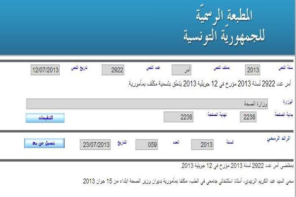 تم تعيين وزير الدفاع السابق عبد الكريم الزبيدي كمللف بمهمة في ديوان وزير الصحة في الحكومة المؤقتة عبد اللطيف المكي، وذلك بمقتضى الأمر أمر عدد 2922 لسنة 2013 المؤرخ في 12 جويلية 2013 في الرائد الرسمي.