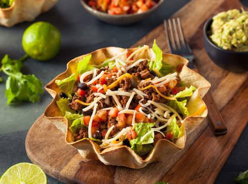 في صحن يلائم ذوق المائدة ومن المستحسن أن يكون أبيض ناصعا يخلو من كل زخرفة أو زركشة ليبدو فيها جمال الخضراوات نقوم بوضع الخضر المفرومة في الصحن على شكل كوم صغيرة غير متجانسة ولا متداخلة وكل كومة في زاوية خاصة بها في الصحن ونجعل فوق كل كومة شيء من التونة مع حبة زيتون وغصن معدنوس لنقوم برش الجميع بعدها بالصلصة المتكونة من الزيت والخل والفلفل الأسود وفص الثوم مع قليل من الملح الموقد.