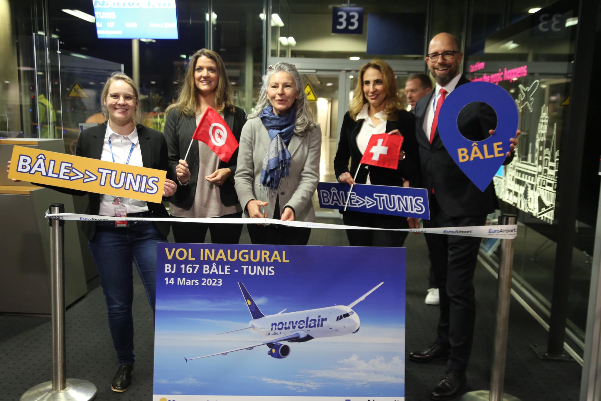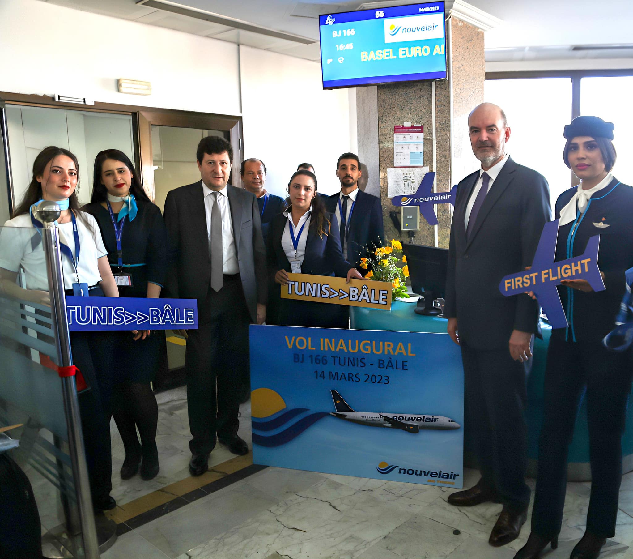 Le 14 mars 2023, nouvelair a officiellement inauguré sa nouvelle ligne aérienne reliant Tunis à la ville suisse de Bâle, située au bord du Rhin au confluent des trois frontières suisse, française et allemande.