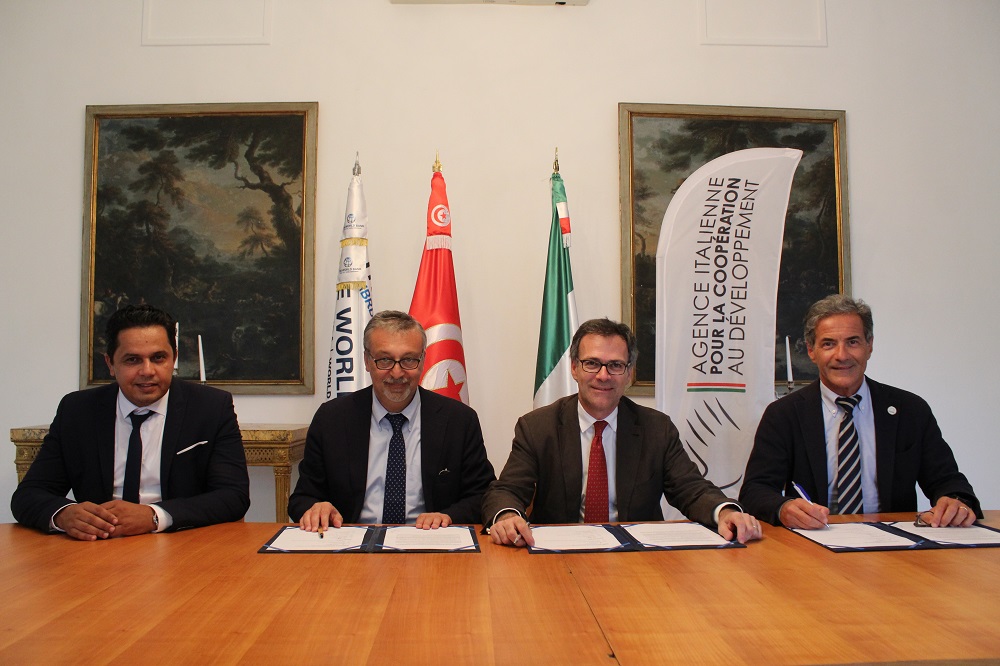 La cérémonie de signature s’est déroulée à la Résidence d’Italie en présence de Son Excellence Mr. Fabrizio Saggio, Ambassadeur d'Italie à Tunis, Mr. Alexandre Arrobbio, Représentant Résident de la Banque Mondiale en Tunisie, Mr. Andrea Senatori, Directeur du Siège Régional de l’Agence Italienne pour la Coopération au Développement (AICS) à Tunis et Mr Mohamed Frigui, Directeur Central en charge de la Gouvernance de l’Institut National de la Statistique (INS).