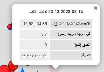 Les analyses préliminaires effectuées par les stations sismologiques de l’INM, ont situé l’épicentre de la secousse à 34,39 degrés de latitude et 10,92 degrés de longitude.