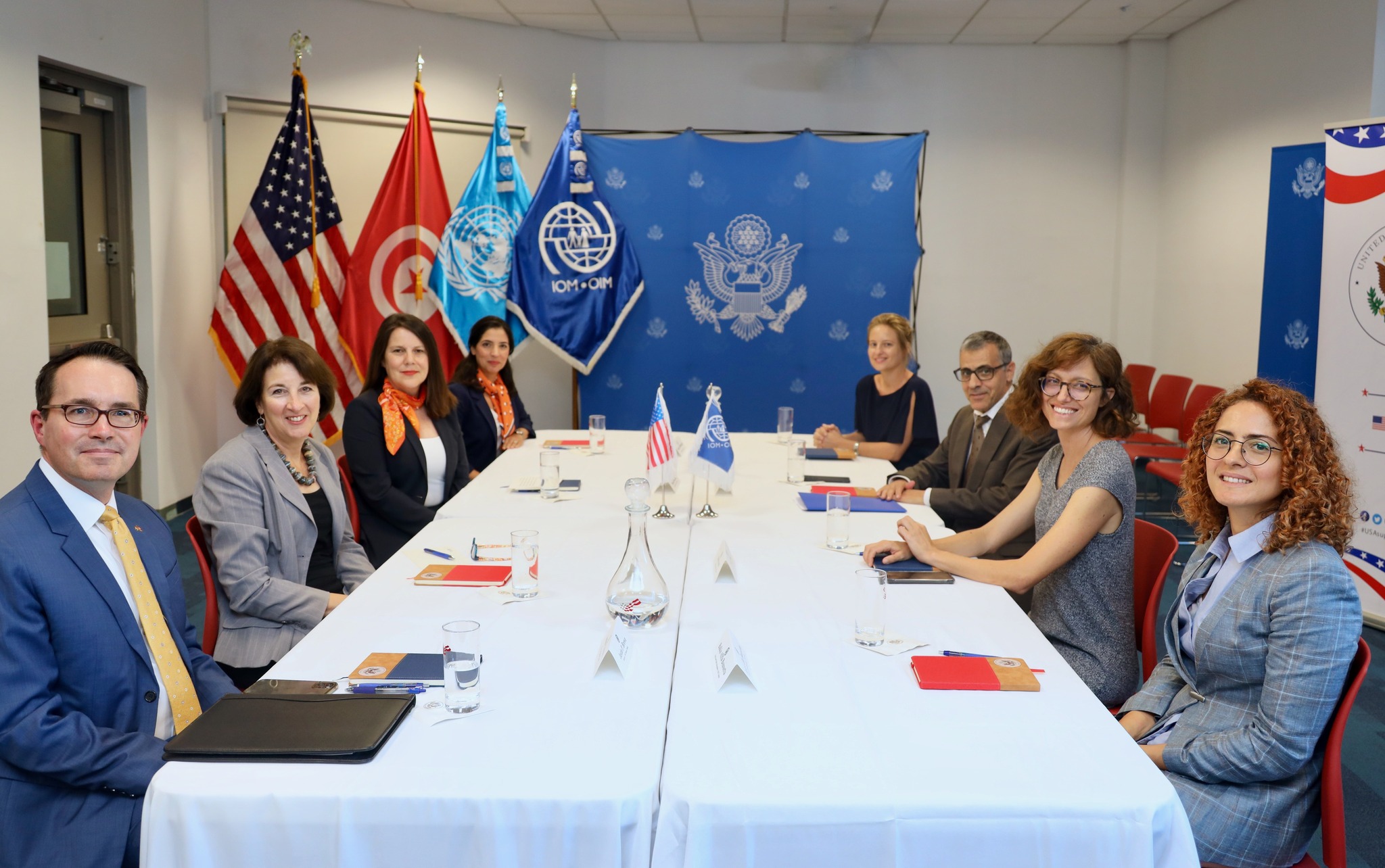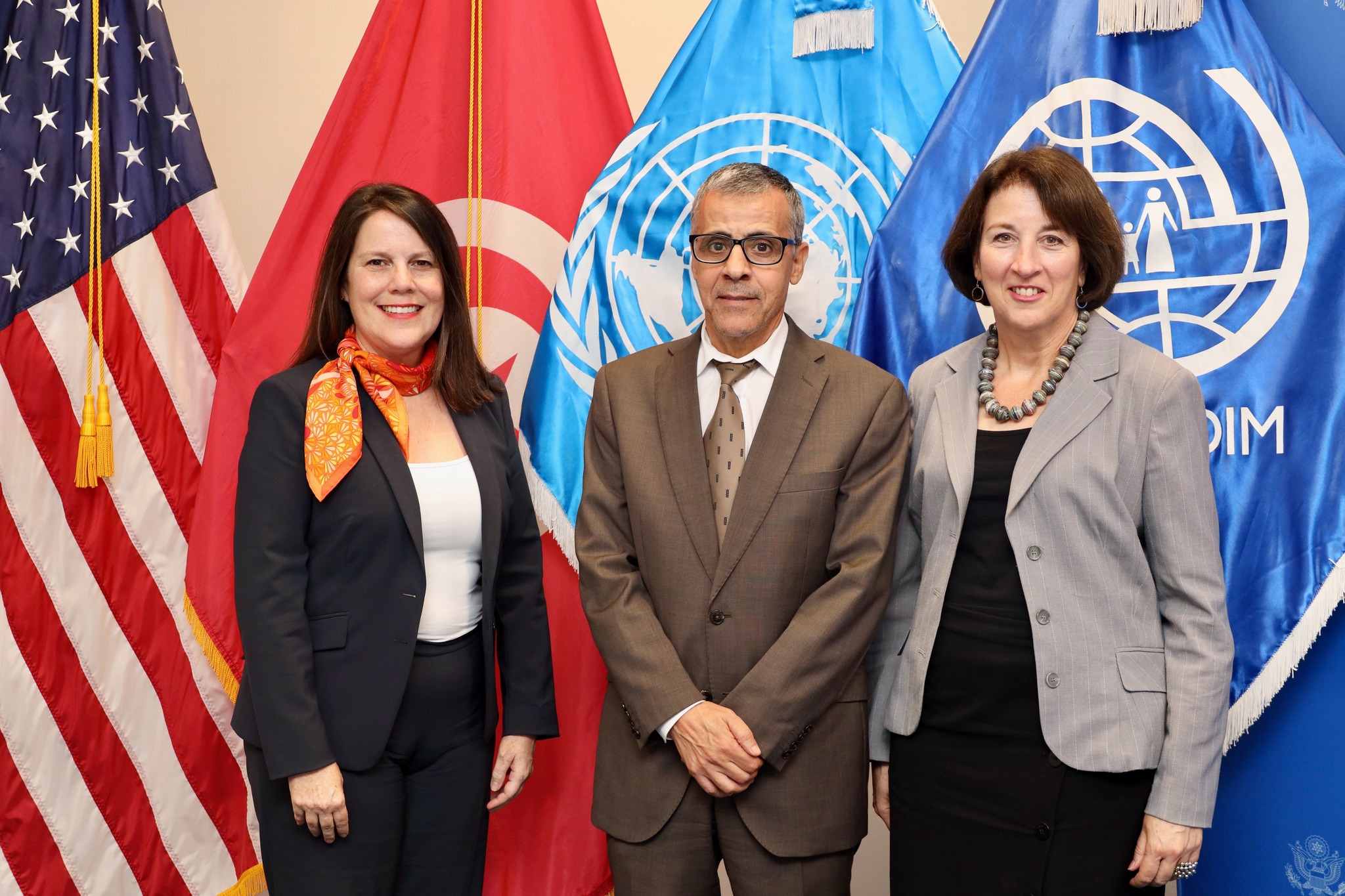 La chargée d'affaires Natasha Franceschi, le chef de mission de l'Organisation internationale pour les migrations (OIM) en Tunisie, Azzouz Samri, et la Secrétaire Adjointe Principale du Bureau de La Population, des réfugiés et des migrations (PRM), Marta Youth, ont annoncé un nouveau soutien du gouvernement américain d'un montant de 4,45 millions de dollars. Ce nouveau financement permettra de fournir une assistance humanitaire et des services aux migrants vulnérables en Tunisie et soutiendra les efforts du gouvernement tunisien en matière d'aide aux migrants et aux demandeurs d'asile.