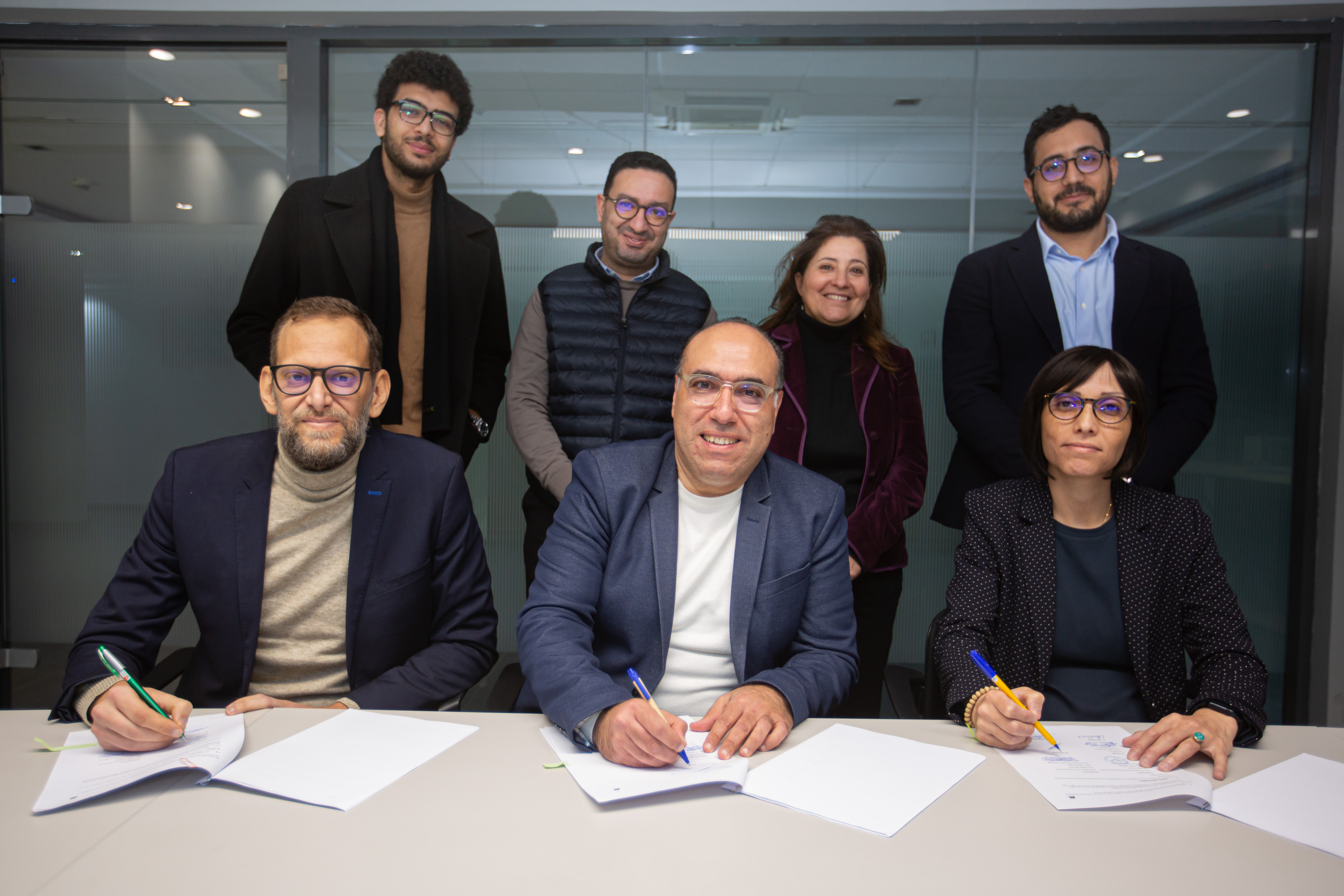 (De gauche à droite, de haut en bas) Aziz Chalghaf (Go Big Partners), Anis Wahabi(Juridoc),Maya BOUREGHDA (Juridoc), Hassen Arfaoui (216 Capital), Aymen Mbarek (Go Big Partners), Kais Assali (Juridoc), Dhekra Khelifi (216 Capital)