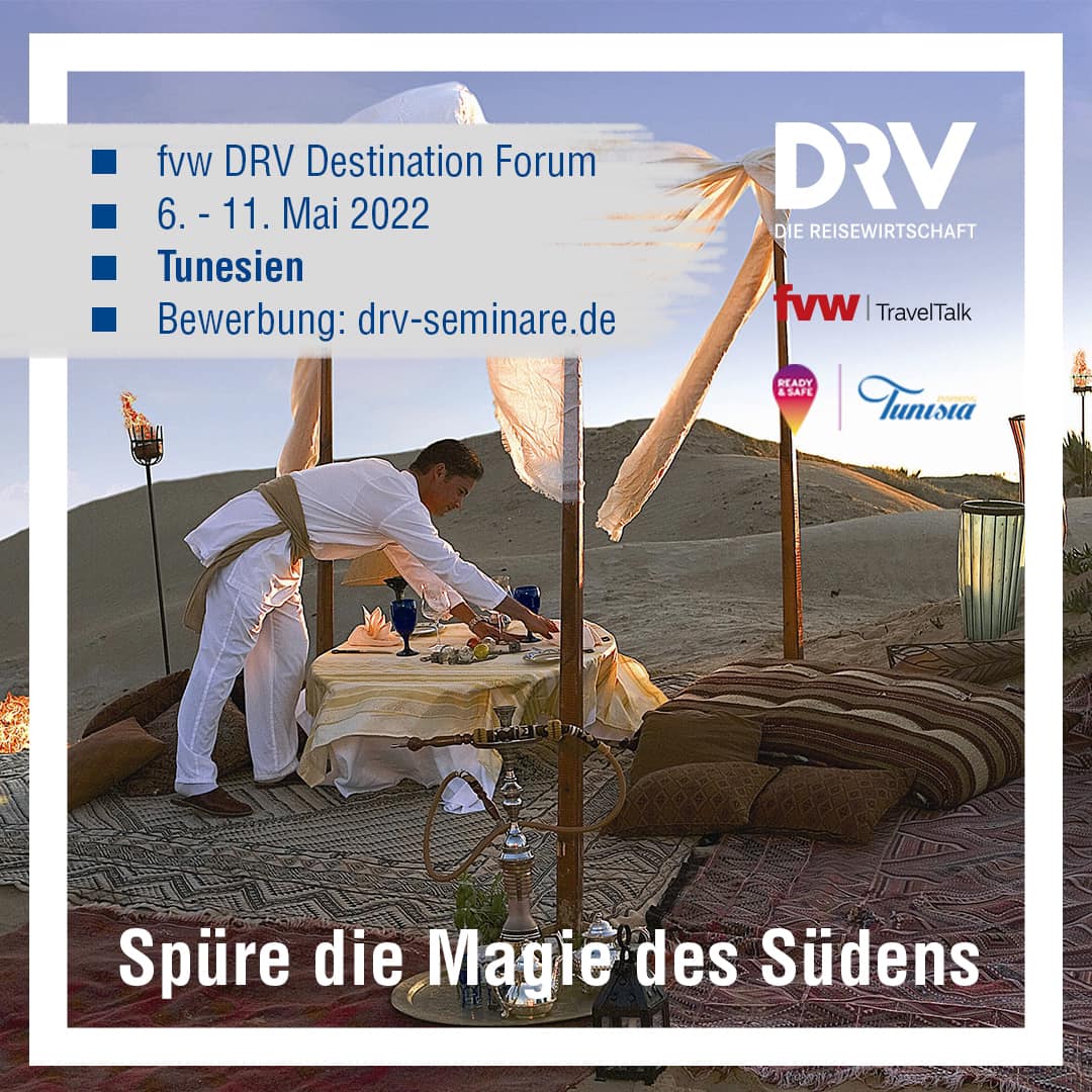 En collaboration avec le ministère du Tourisme, l’ONTT (Office National du Tourisme Tunisien), Tunisair et la FTAV (Fédération Tunisienne des Agences de Voyages et de Tourisme), la DRV (Association allemande des voyages), a choisi la Tunisie, et spécialement la région de Tozeur, pour organiser son événement ' Destination Forum '.