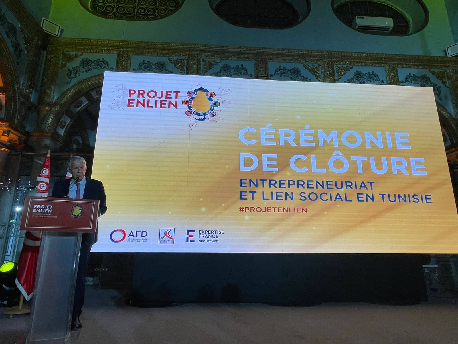 Le projet EnLien « Entrepreneuriat et Lien social en Tunisie », financé par l’Agence Française de Développement et mis en œuvre par la Caisse des Dépôts et Consignations tunisienne avec l’assistance d’Expertise France touche à sa fin après 48 mois d’activités. Une cérémonie de clôture s’est tenue le 27 octobre 2022 au palais de Ksar Said, en présence de l’Ambassadeur de France en Tunisie, M. André Parant.