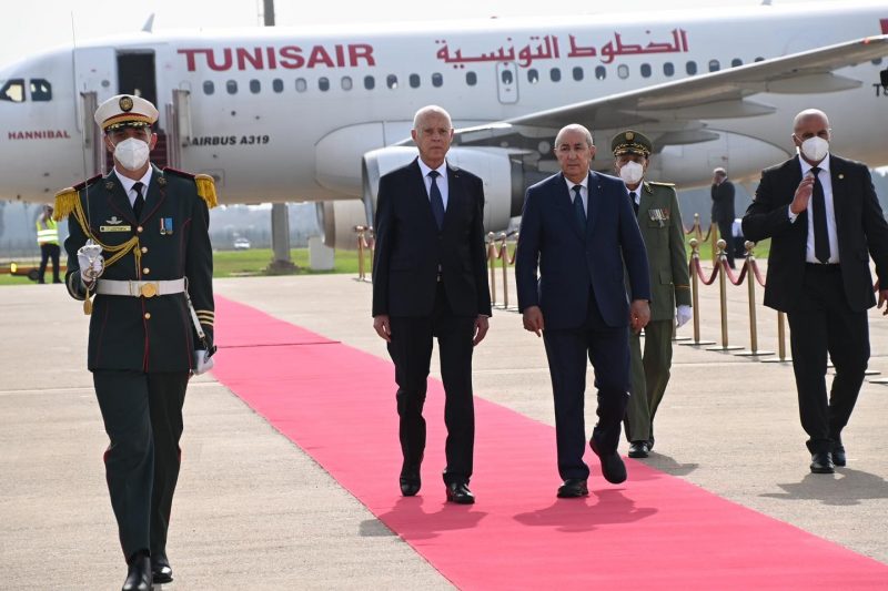 Saïed a été accueilli à sa descente d’avion à l’aéroport, Houari Boumediene à Alger, par son homologue algérien, Abdelmajid Tebboune.