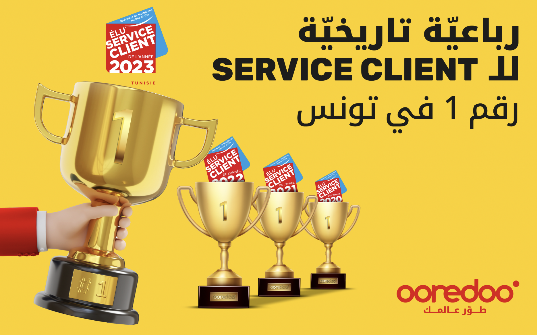 Ooredoo Tunisie clôture l’année 2022 en beauté, célébrant le 20ème anniversaire de la marque dans un esprit d’excellence et de réussite avec l’obtention pour la 4ème année consécutive du label '' Élu Service Client de l'année 2023 ''.